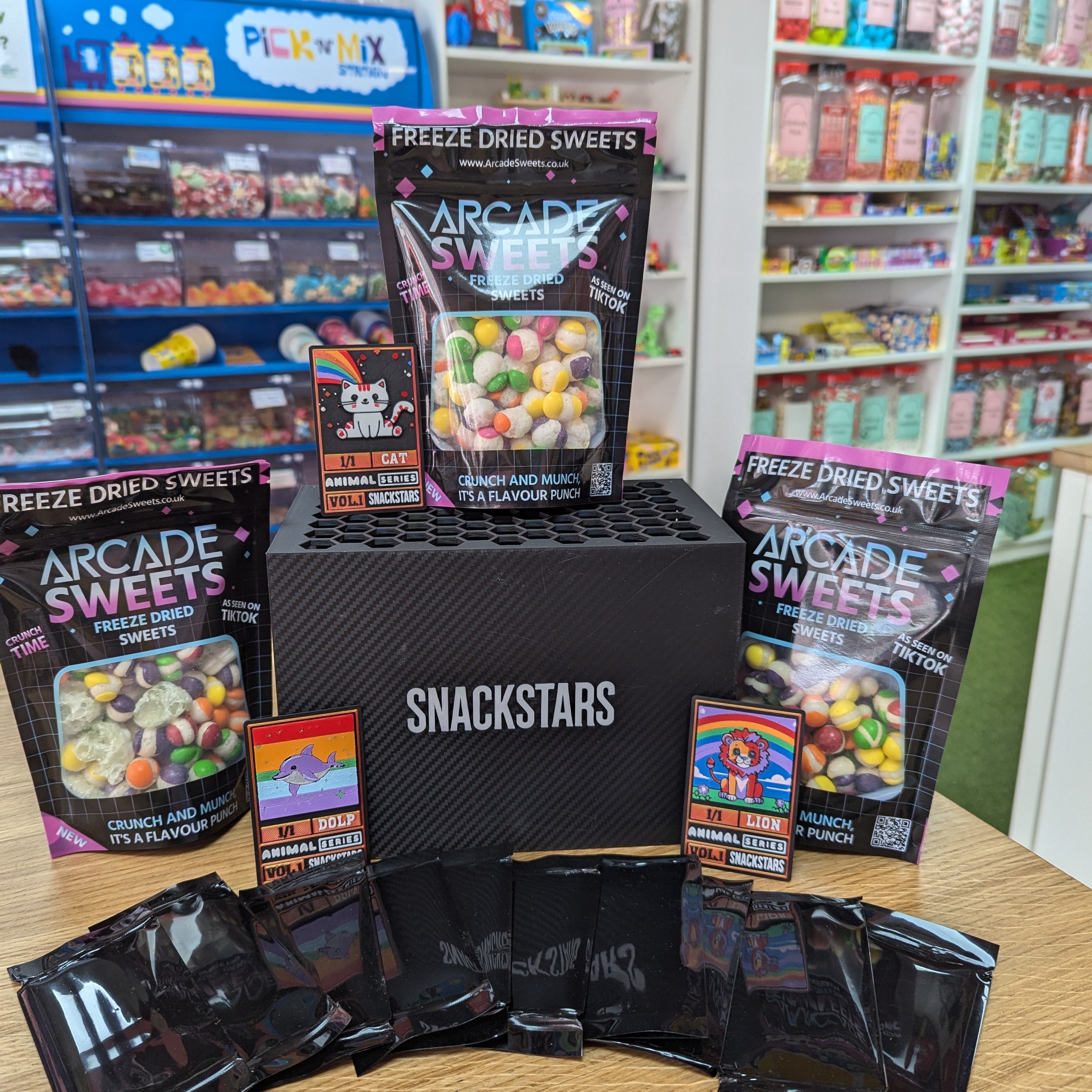 Kid love the freeze dried sweets and the card is the icing on the cake. He can't wait to collect them all.
